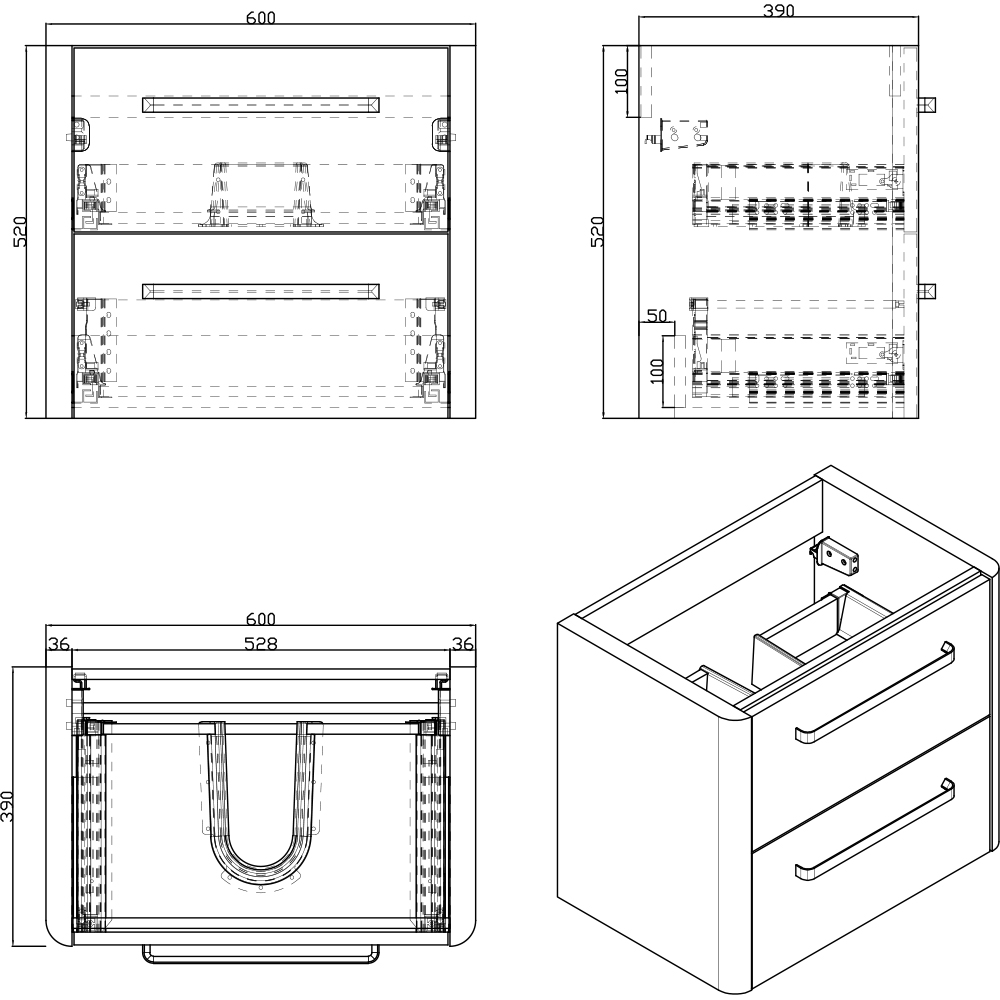 Suburb 600mm x 395mm double drawer wall mounted cabinet matt ash